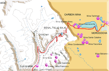 - Administramos mapas con capas de información representadas en diferentes estructuras mostrando los rasgos terrestres con ubicaciones de las minas e incluyendo datos en tiempo real del monitoreo ambiental.